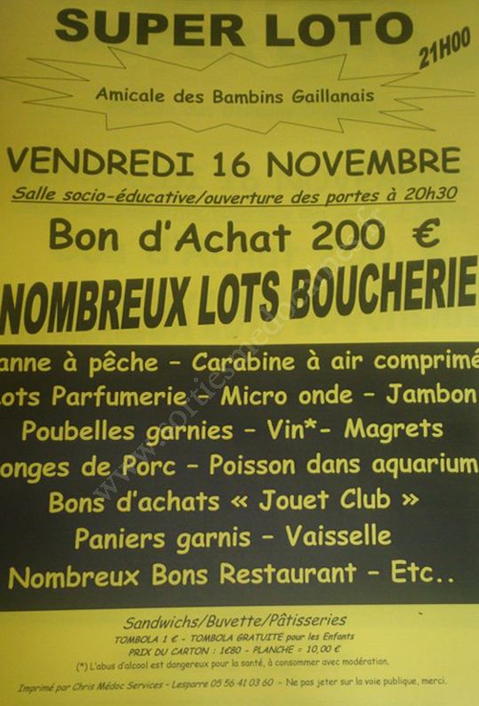 Organisé par l'Amicale des bambins gaillanais afin d'offrir un arbre de noel aux enfants de l'ecole de Gaillan.
