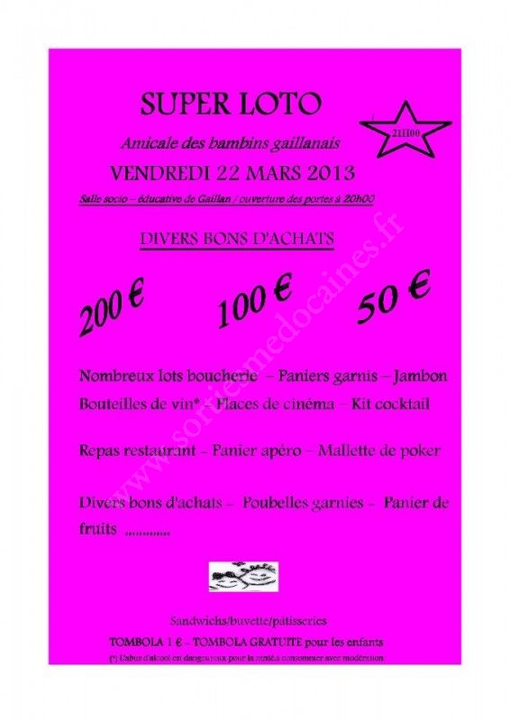Super loto organisé par l'Amicale des Bambins Gaillanais.