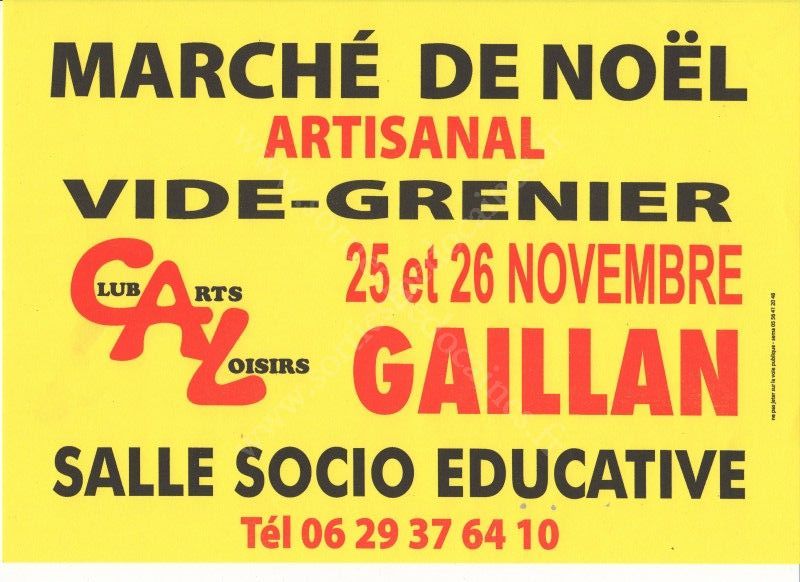Le Club Art et Loisirs de GAILLAN en MEDOC vous informe de son marché de noël artisanal et du vide grenier le 25 et 26 novembre 2017 à Gaillan en Médoc avec samedi et dimanche un défilé de mode.