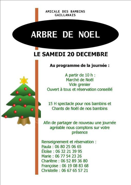 L AMICALE DES BAMBINS ORGANISE UN VIDE GRENIER ET UN MARCHE DE NOEL LORS DE NOTRE ARBRE DE NOEL DES ENFANTS DES ECOLES MATERNELLES ET PRIMAIRES.