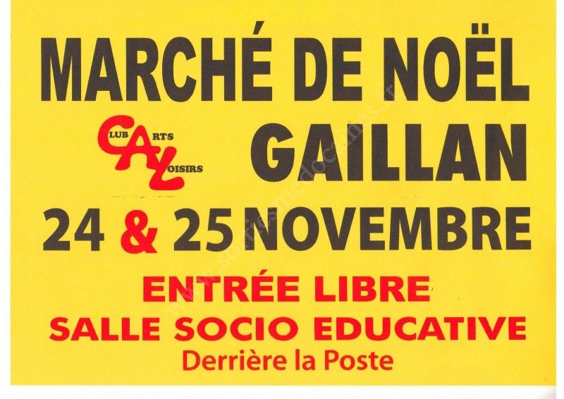 Le CAL (Club Arts & Loisirs Gaillan) organise comme tous les ans son marché de Noël qui aura lieu cette année les 24 et 25 novembre.