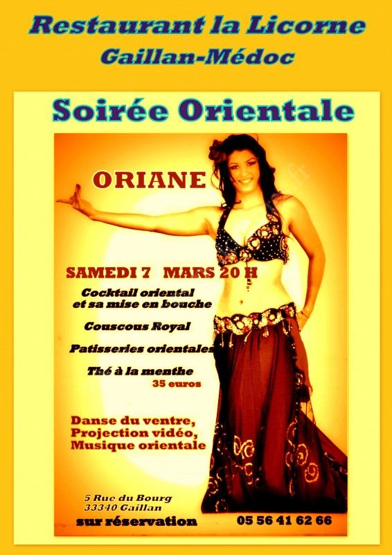 Soirée Orientale au Restaurant La Licorne avec Oriane, danseuse du ventre.