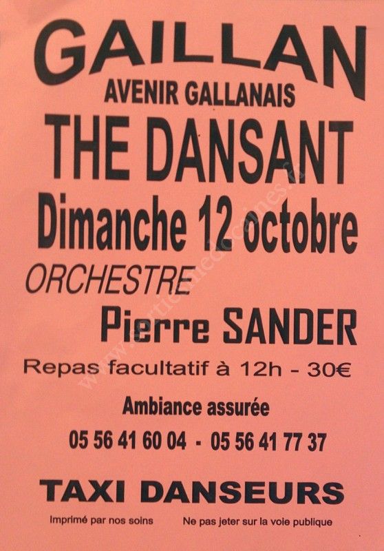 Thé dansant organisé par l'Avenir Gaillanais avec l'orchestre Pierre Sander.