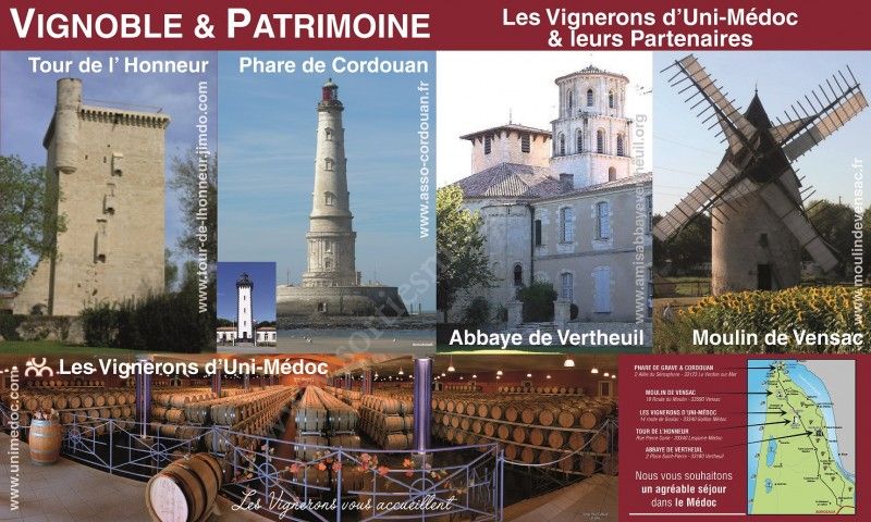 Les Amis de la Tour de l’Honneur de Lesparre, les Amis de l’Abbaye de Vertheuil, l’Association du Phare de Cordouan Phare de Richard et Phare de Graves ainsi que le Moulin de Vensac organisent cette journée de communication et d'information qui se tiendra chez les Vignerons d’Uni-Médoc. Les organisateurs parleront au public avec passion de leur association et les inviteront à découvrir le patrimoine architectural médocain.