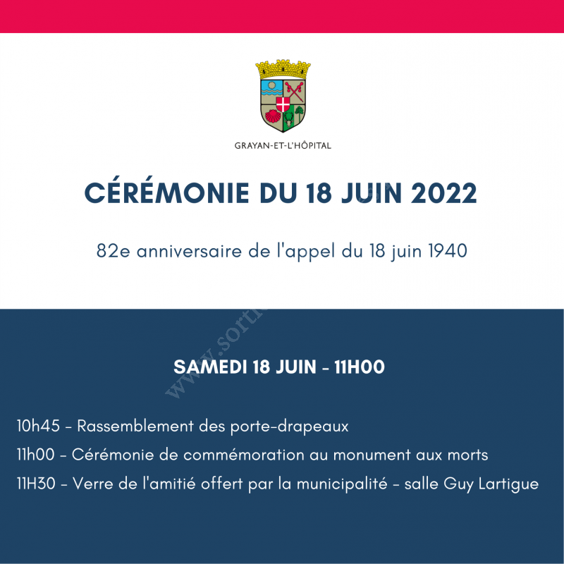 La municipalité de Grayan vous invite aux cérémonies du 82ème anniversaire de l'appel du 18 juin 1940.