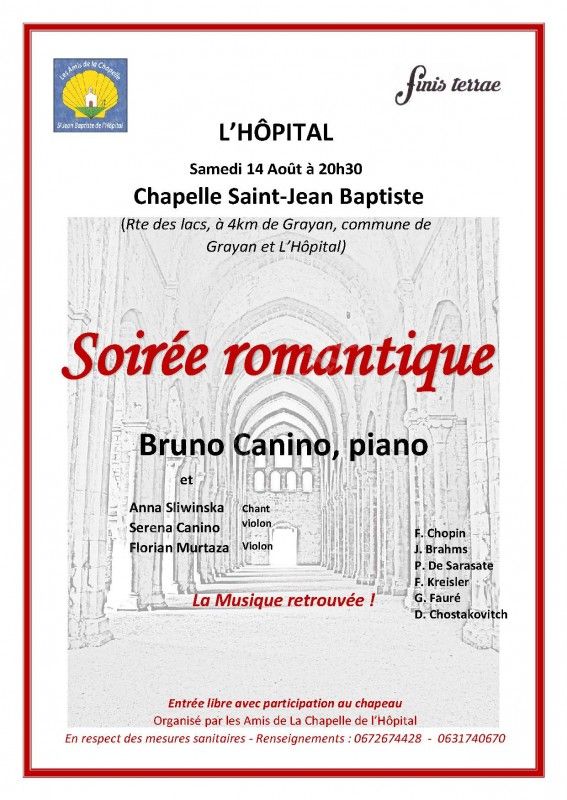Les Amis de La Chapelle de l’Hôpital vous invitent à un concert de musique et de chant romantique dans la chapelle néo-romane de l’Hôpital.