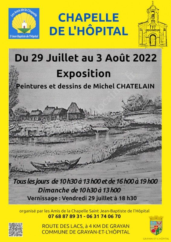Dans le cadre de la saison culturelle à La Chapelle de l’Hôpital, l’association « Les Amis de la Chapelle Saint Jean-Baptiste de l’Hôpital » organise l’exposition « Peintures et dessins de Michel Chatelain » qui sublime les paysages de l’océan, de la Gironde et des terres humides.