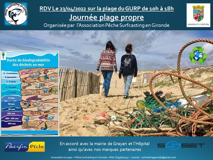 Journée Plage Propre organisée par l'Association Pêche Surfcasting en Gironde.