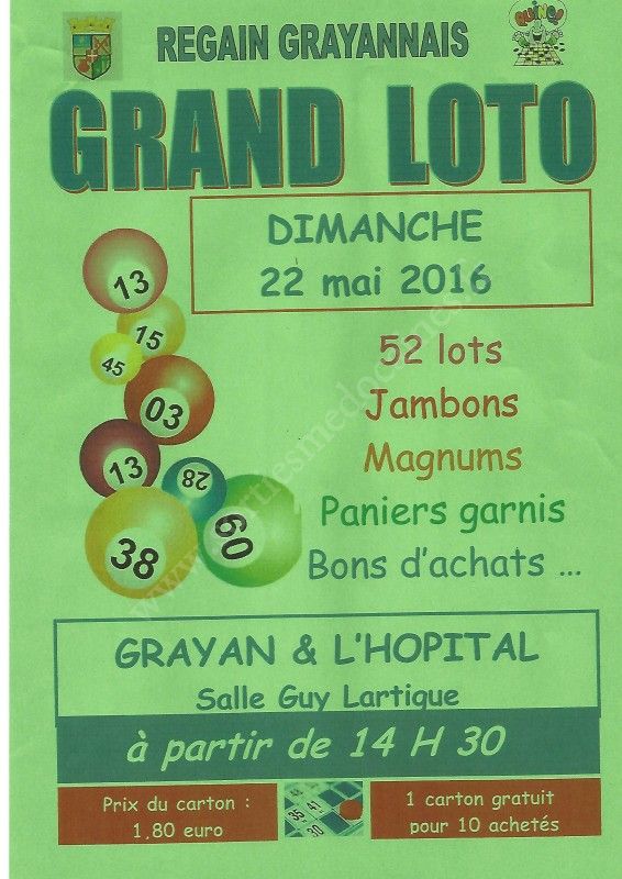 Dimanche 22 mai à GRAYAN ET L'HOPITAL, loto du Regain Grayannais.