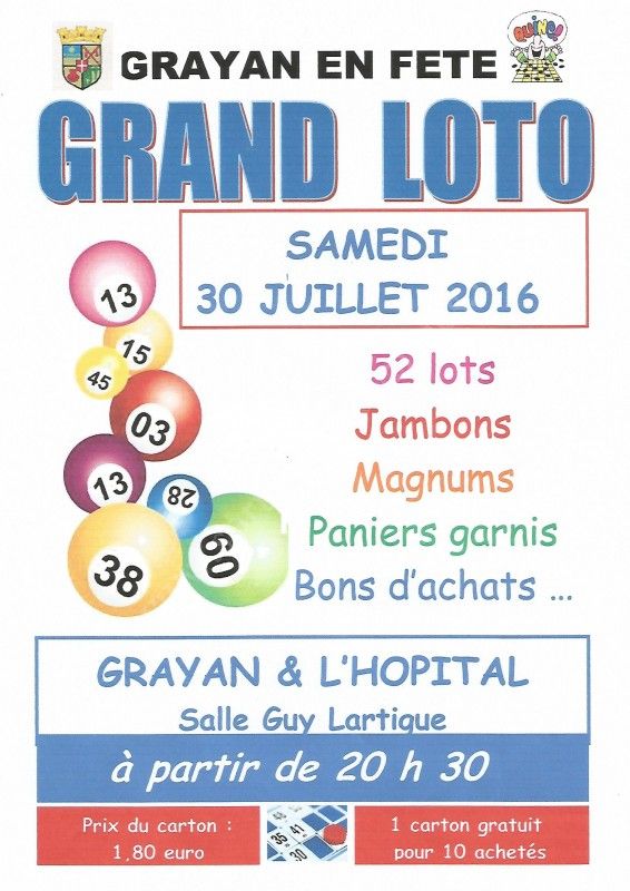 52 lots à gagner dont : jambons, paniers garnis, bons d'achats, volailles, rotis, etc..........