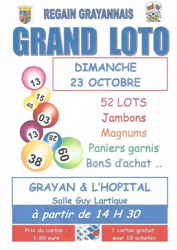 De nombreux lots à gagner dont : paniers garnis, huitres,saucisses, jambons, volailles, rotis, etc.... (52 lots)