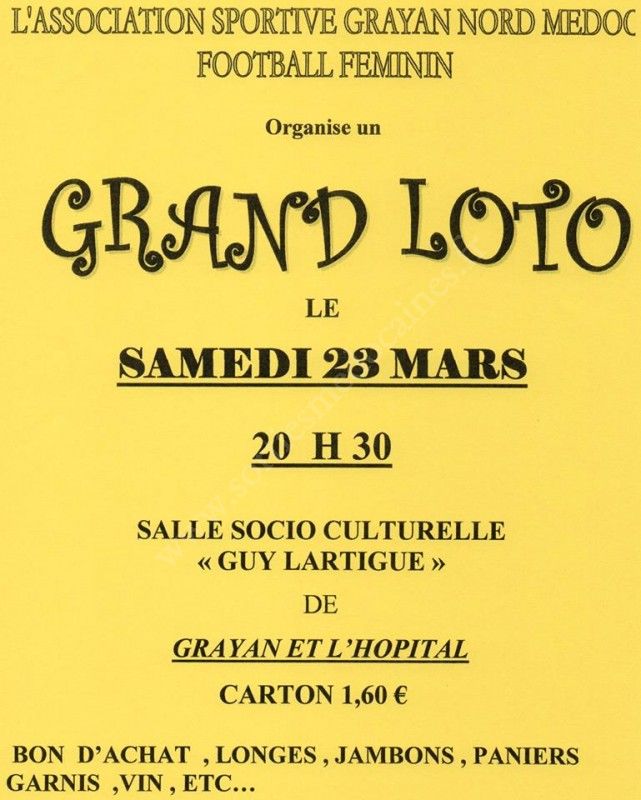 Loto organisé par l'Association Sportive Grayan Nord Médoc Football Féminin.