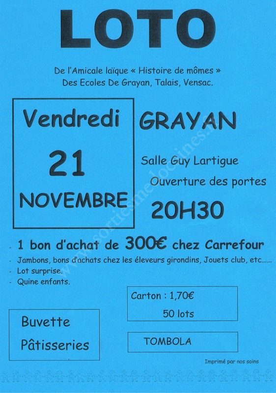 Loto de l'amicale laïque "Histoire de mômes" des écoles de Grayan, Talais, Vensac.