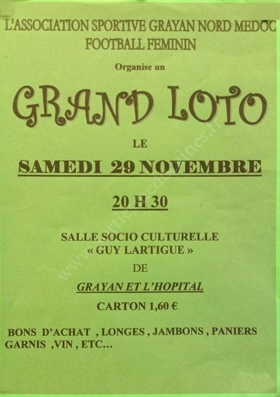 Loto organisé par l'Association Sportive Grayan Nord Médoc Football Féminin.