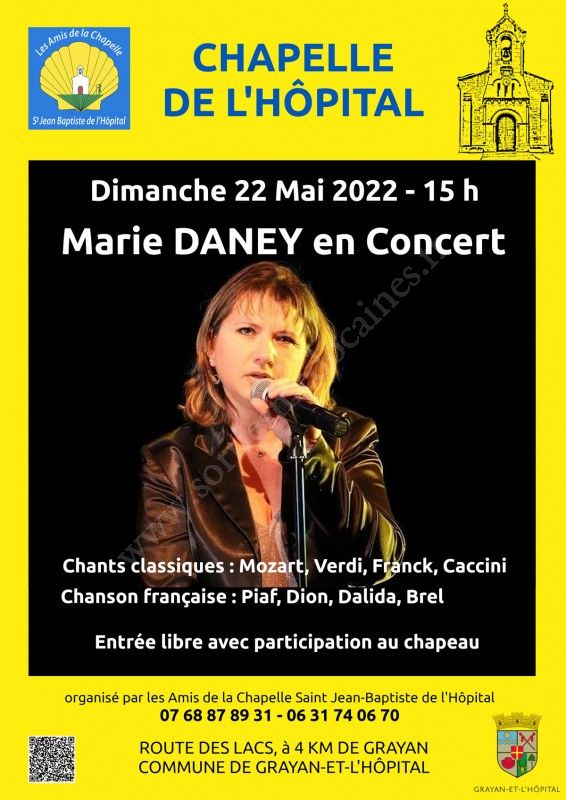 L’association Les Amis de la Chapelle Saint Jean-Baptiste de l’Hôpital organise un concert de chants, donné par la CHANTEUSE BIGOURDANE soprano Marie DANEY.