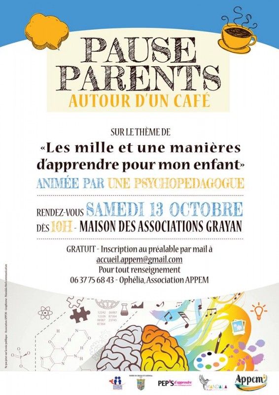 Pause Parents Autour d'un Café sur le thème "Les mille et une manières d'apprendre pour mon enfant".