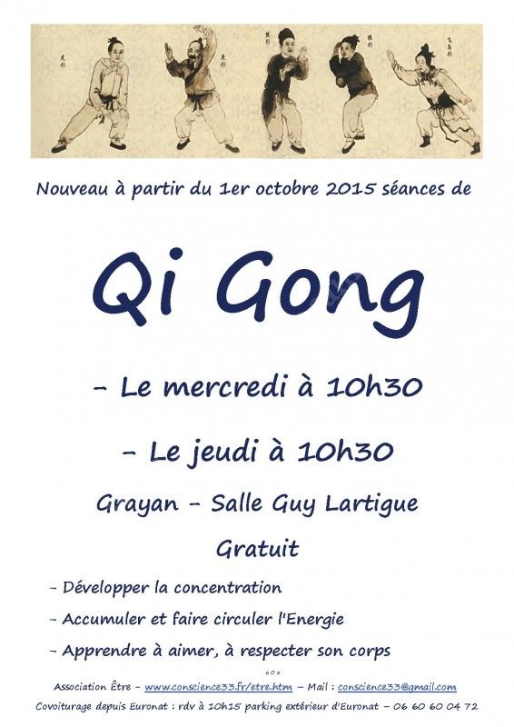 Toute l'année : séances gratuites de Qi Gong le mercredi et le jeudi à 10h30.