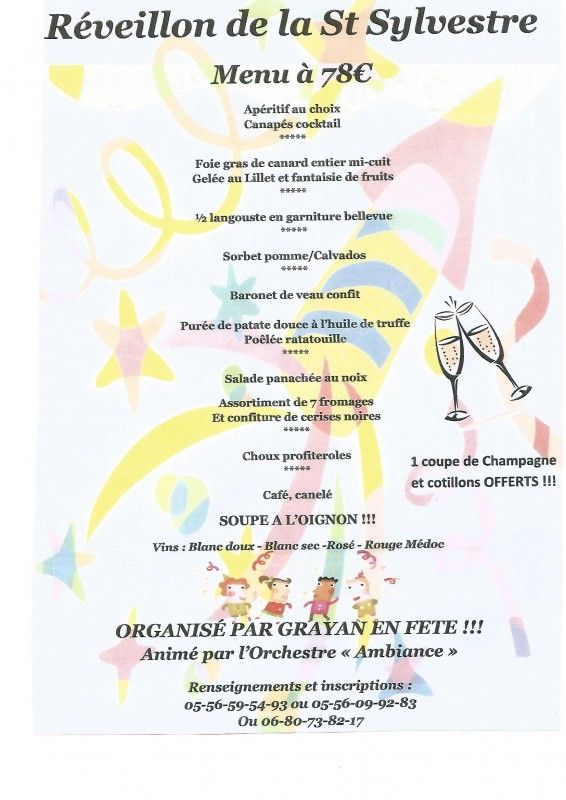 Réveillon de la Saint-Sylvestre organisé par Grayan en Fête et animé par l'Orchestre Ambiance.