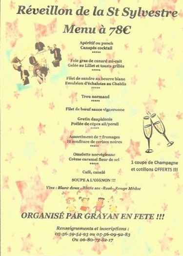 Grand réveillon de la St Sylvestre organisé par Grayan en Fête