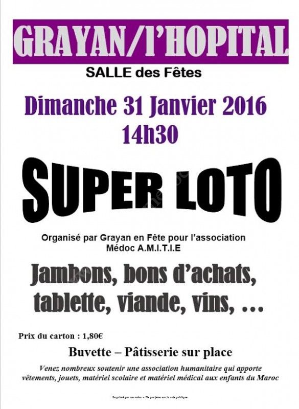 Super loto au profit de l'association humanitaire Médoc AMITIE organisé par Grayan en Fête.