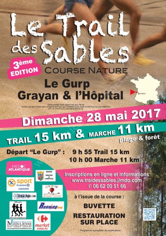 - Trail des Sables : Inscription ici (14€ + 1€ de frais d'inscription) - Jusqu'au 26 mai 2017 à 22h00