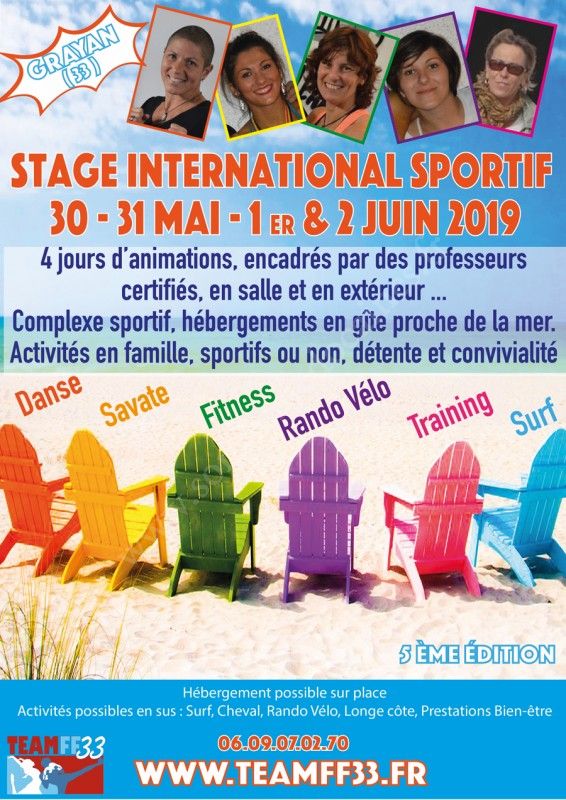 5ème édition du stage sportif et ULTRA convivial de Grayan, stage accessible à tous, adhérents ou non adhérents ... Profitez du pont du 30 mai pour faire du sport : En intérieur ou sur la plage, que vous soyez seul, en famille ou entre amis, tout le monde y trouvera son bonheur !