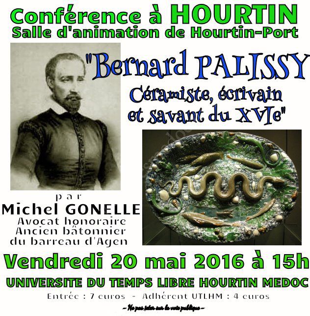 Conférence de l'Université du Temps Libre au cours de laquelle nous pourrons écouter Michel GONELLE, avocat honoraire, ancien bâtonnier du barreau d'Agen, nous conter la vie géniale et tumultueuse, trop souvent méconnue de : Bernard PALISSY.