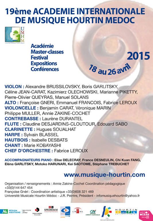 20h30 : Concert des professeurs église de Hourtin (entrée 15€) - Vendredi 24 avril 2015 :