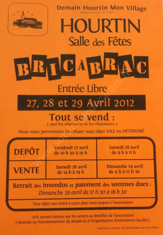 Dépot des marchandises le vendredi 27 avril de 10h30 à 19h00 & le samedi 28 avril de 9h00 à 11h00.