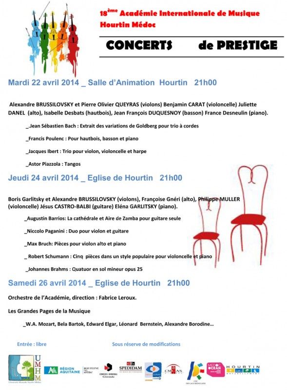 Concert avec : Boris Garlitsky et Alexandre BRUSSILOVSKY (violons), Françoise Gnéri (alto), Philippe MULLER (violoncelle) Jésus CASTRO-BALBI (guitare) Eléna GARLITSKY (piano).