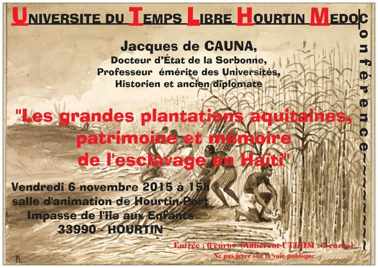 L'Université du Temps Libre Hourtin Médoc vous propose une conférence sur le thème : "Les grandes plantations aquitaines, patrimoine et mémoire de l'esclavage en Haïti".