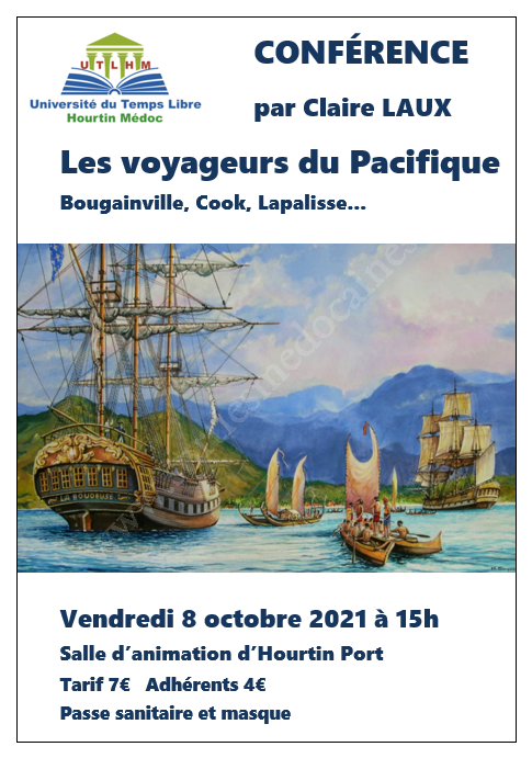 Claire LAUX, professeure à Sciences Po Bordeaux et spécialiste de l'Histoire du Pacifique insulaire, emmènera son public sur les traces de grands explorateurs qui, à la fin du 18ème siècle, partirent à l'aventure pour découvrir des terres inconnues dans l'immensité de cet océan, les Bougainville, Cook, Wallis, La Palisse...