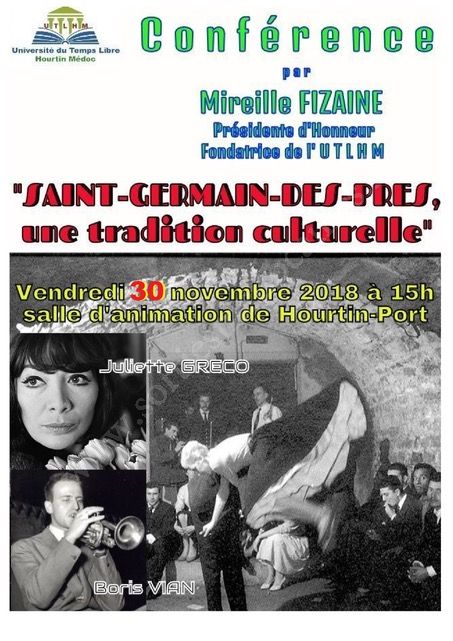 C'est à un moment très particulier, empreint de plaisir et de gratitude, que l'Université du Temps Libre Hourtin Médoc vous convie à cette conférence puisque l'invitée du jour ne sera autre que Mireille FIZAINE, sa présidente d'honneur, à qui on doit la naissance et l’existence de l'UTLHM.