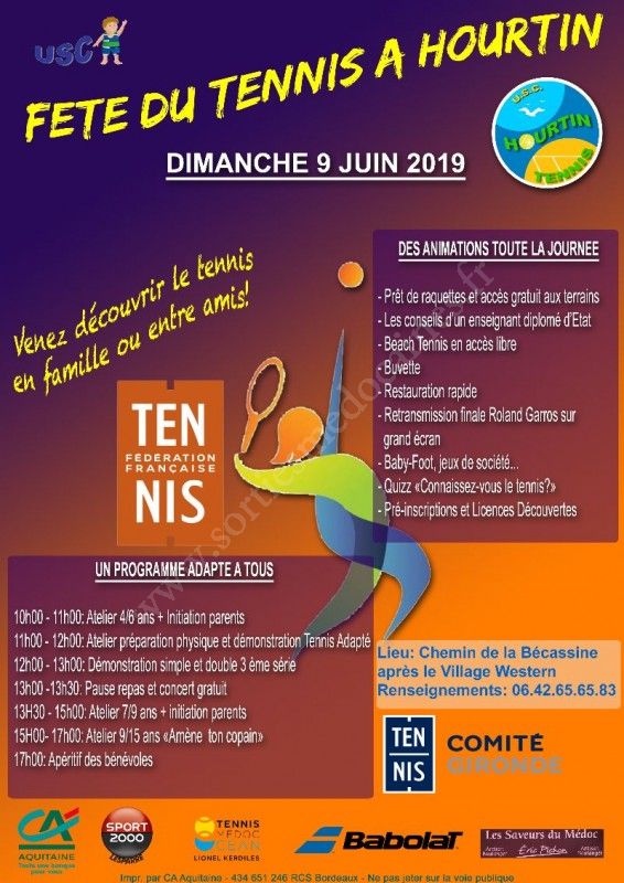 Le club d'Hourtin fête la journée nationale du tennis: Animations et ateliers découvertes pour tous, enfants, parents, grands-parents, novices, joueurs confirmés, personnes en situation de handicap...