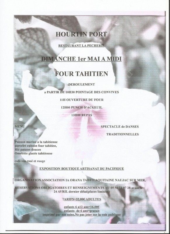Journée Tahitienne avec un repas spectacle de danse traditionelles, exposant de culture polynesienne (artisanat cosmetiques bijoux).