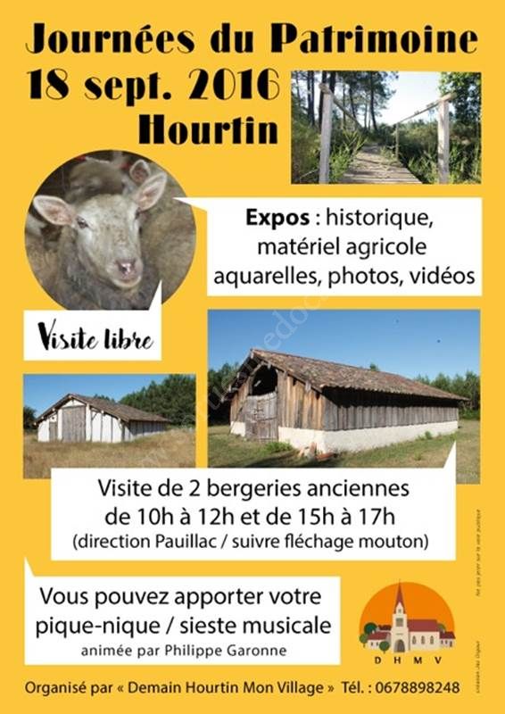 Au programme : visite de 2 bergeries anciennes (10h00 à 12h00 et 15h00 à 17h00), expositions, vidéos, pique-nique possible sur place (penser à amener votre pique-nique), sieste musicale, dégustation de brisou (spécialité médocaine),...