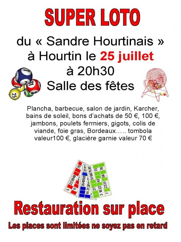 De nombreux lots à gagner : Plancha, barbecue, salon de jardin, Karcher, bains de soleil, bons d’achats de 50 €, 100 €, jambons, poulets fermiers, gigots, colis de viande, foie gras, Bordeaux….. tombola valeur100 €, glacière garnie valeur 70 €
