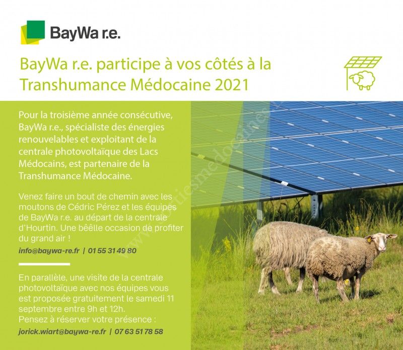 A l'occasion de la Transhumance Médocaine 2021, la société BayWa r.e. France vous ouvre les portes du parc solaire pour une visite sous le signe de l'échange et de la convivialité.