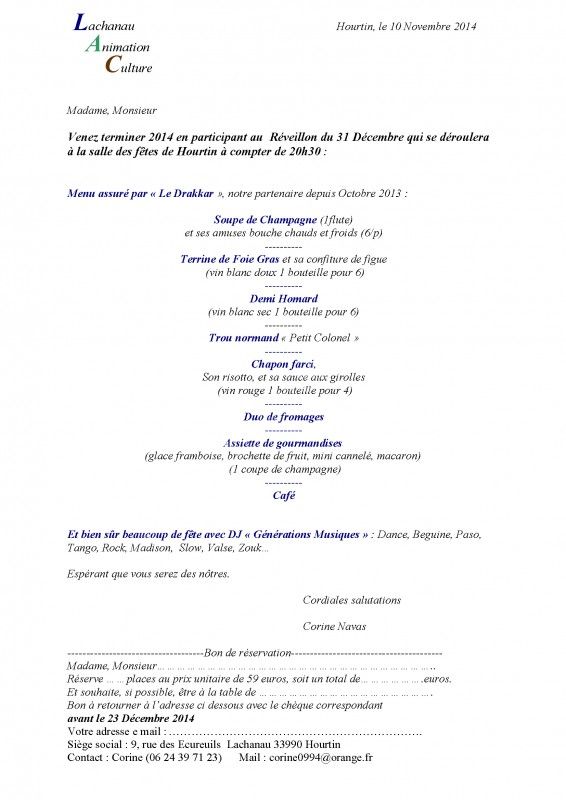 Venez terminer 2014 en participant au Réveillon du 31 Décembre organisé par l'association LAC.