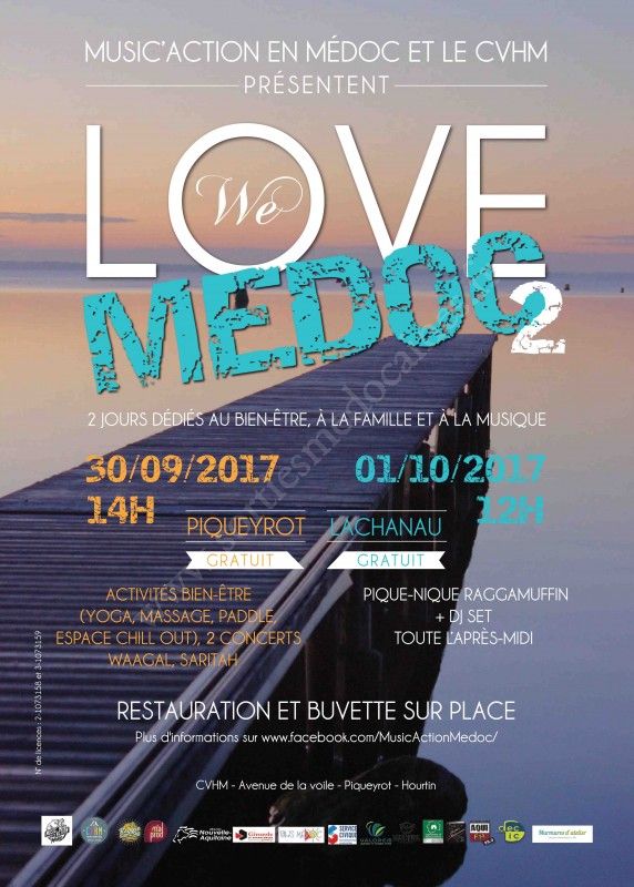 Le 30 septembre et le 1er octobre aura lieu la seconde édition du We Love Médoc, en partenariat avec le Centre de Voile d'Hourtin Médoc, l'association de pétanque de Lachanau, et la municipalité d'Hourtin. Deux journées axées sur le bien-être, la convivialité et la musique !