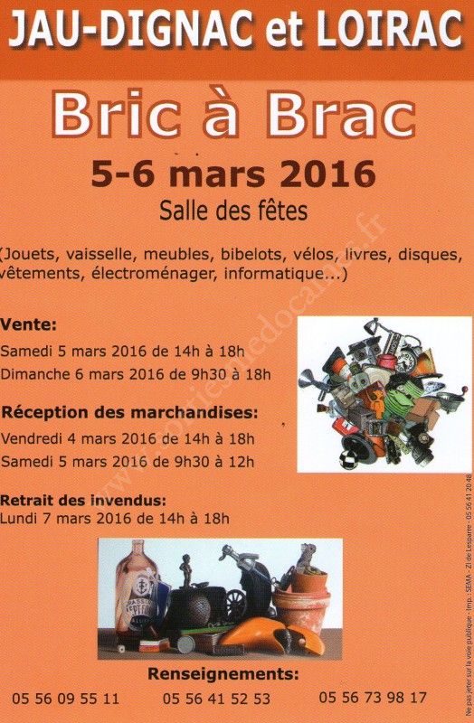 Bric à Brac (jouets, vaisselle, meubles, bibelots, vélos, livres, disques, vêtements, électroménager, informatique, ...).