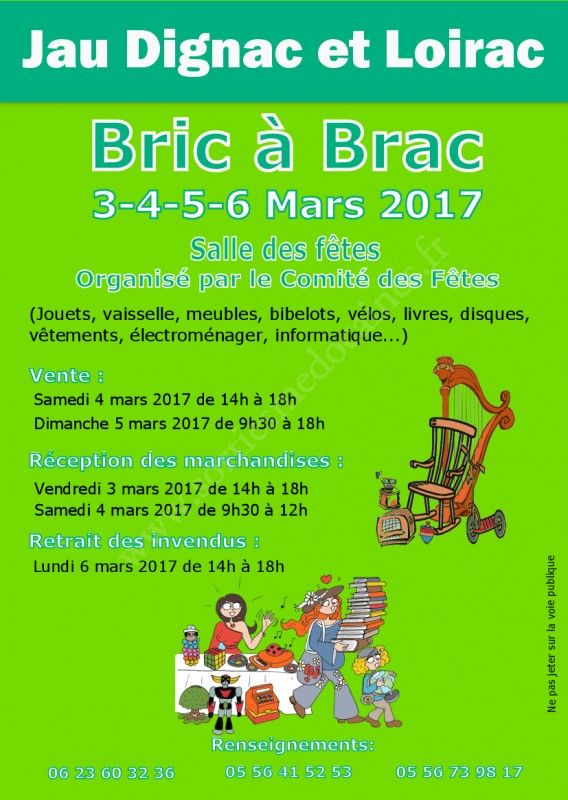 Le Comité des Fêtes organise son Bric à Brac le 3-4-5-6 Mars 2017.