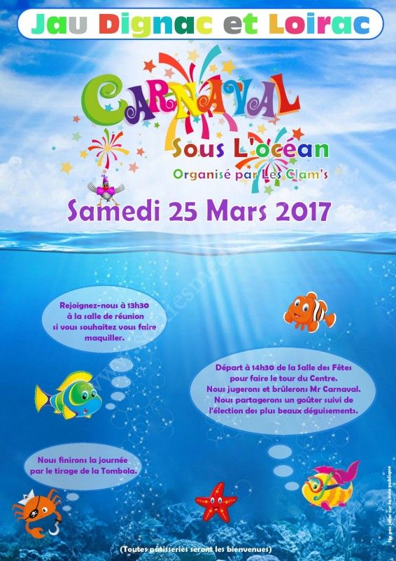 L’association « Les Clam’s » organise son Carnaval « sous l’océan » à Jau Dignac et Loirac.