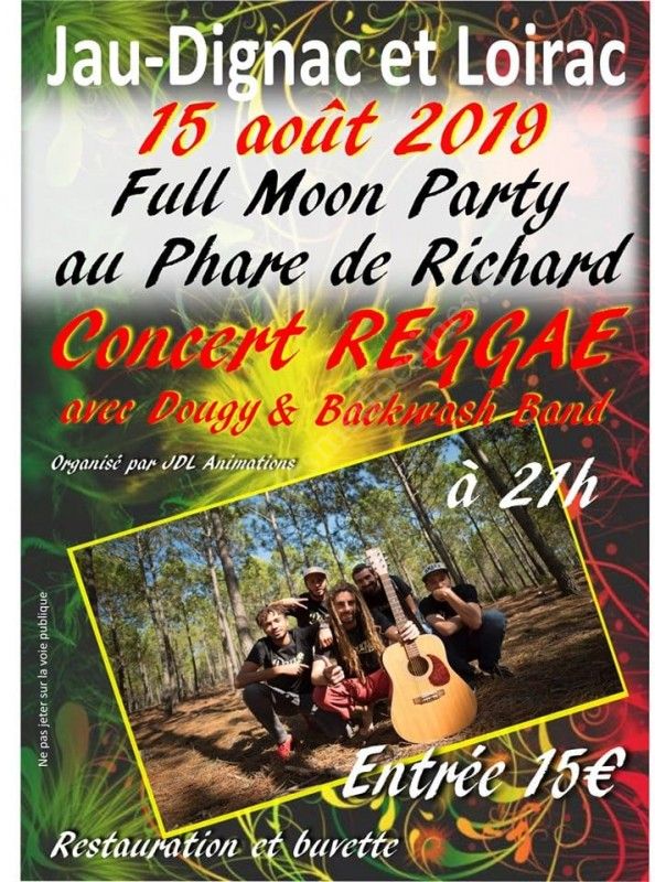 L'association JDL Animations organise un Concert Reggae avec Dougy et Backwash Band au phare de Richard le 15 août à 21h00.