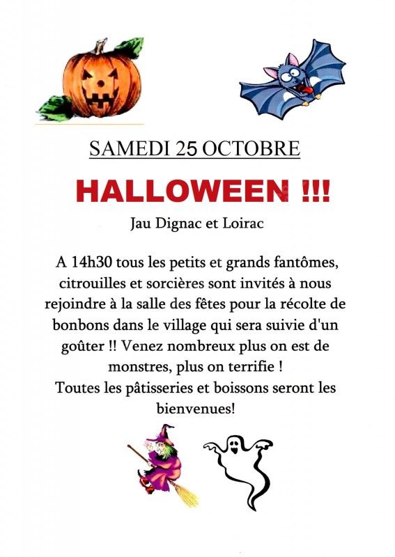 Venez tous nous rejoindre à la salle des fêtes, pour notre récolte annuelle de bonbons dans le village.
