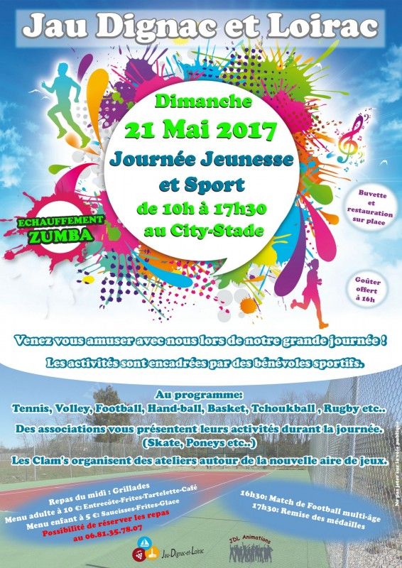 La Municipalité de Jau Dignac et Loirac et l'association JDL Animations organisent une journée "jeunesse et sport" le dimanche 21 Mai 2017.