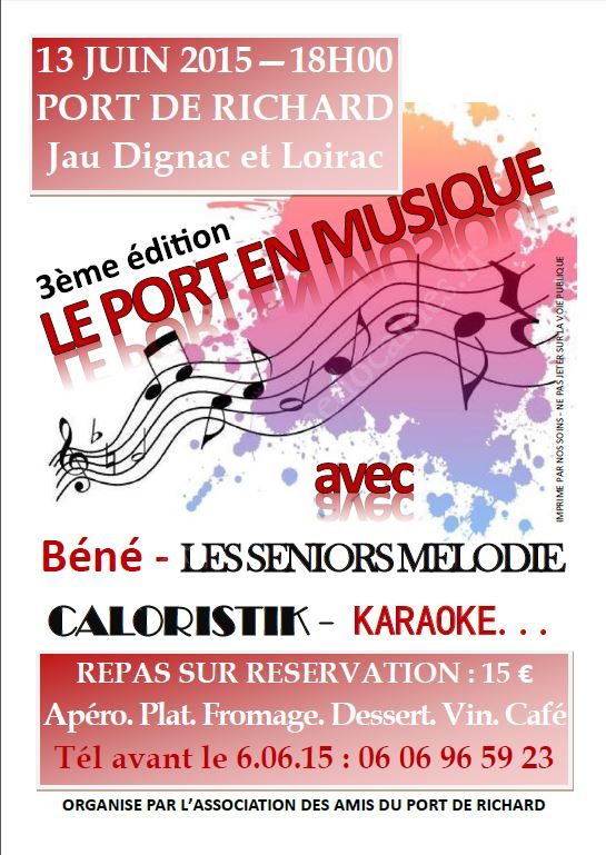 Repas sur réservation (15€/pers.) avant le 6 juin 2015 par téléphone.