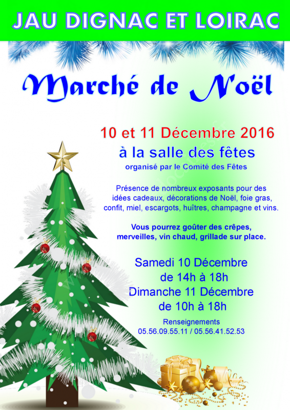 Le Comité de Fêtes de Jau Dignac et Loirac organise un Marche de Noël le 10 et 11 Décembre 2016.