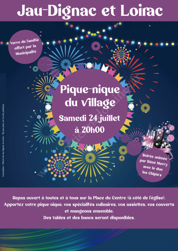 La Municipalité est contrainte d’annuler le pique-nique prévu le samedi 24 juillet 2021 suite à l'allocution du président Emmanuel Macron ce lundi 12 juillet qui a annoncé de nouvelles restrictions dont le passe sanitaire qui va devenir obligatoire pour tous les lieux de loisirs et les lieux culturels au-delà de 50 personnes au 21 juillet.