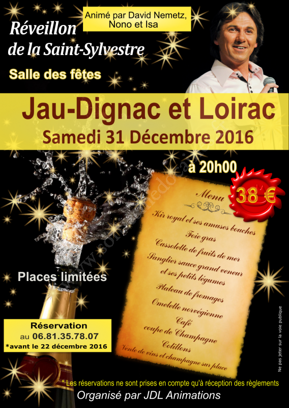 L'association JDL Animations organise le réveillon de la St Sylvestre le 31 décembre 2016.
